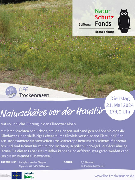 Nächsten Dienstag (21.5.) bieten wir anlässlich des europaweiten Natura-2000-Tages eine naturkundliche Führung in den Glindower Alpen an.