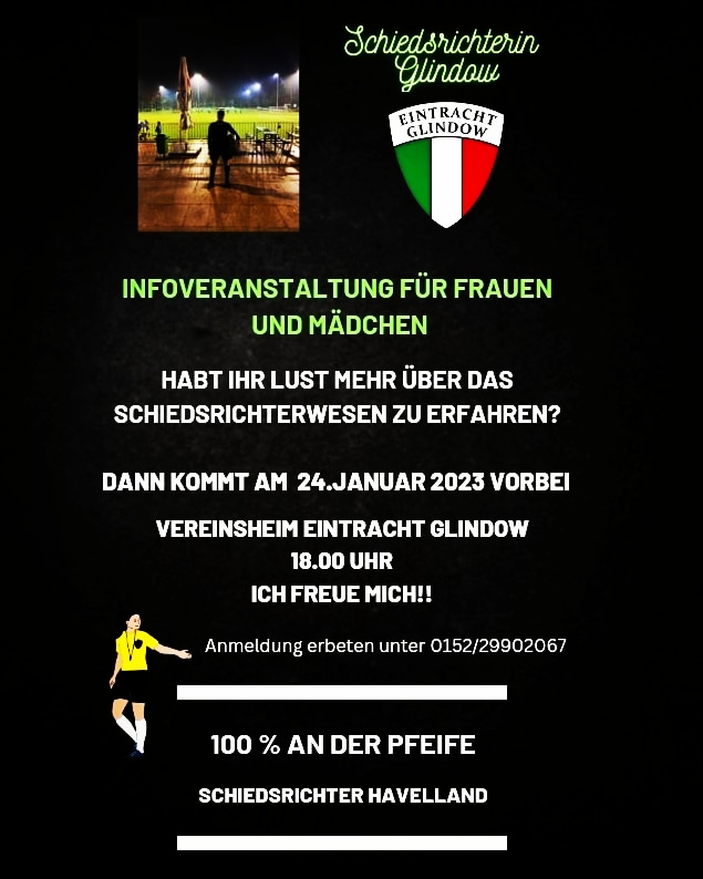 Adresse: Vereinsheim Eintracht Glindow, Dr.-Külz-Str. 54, 14542 Werder (Havel) OT Glindow