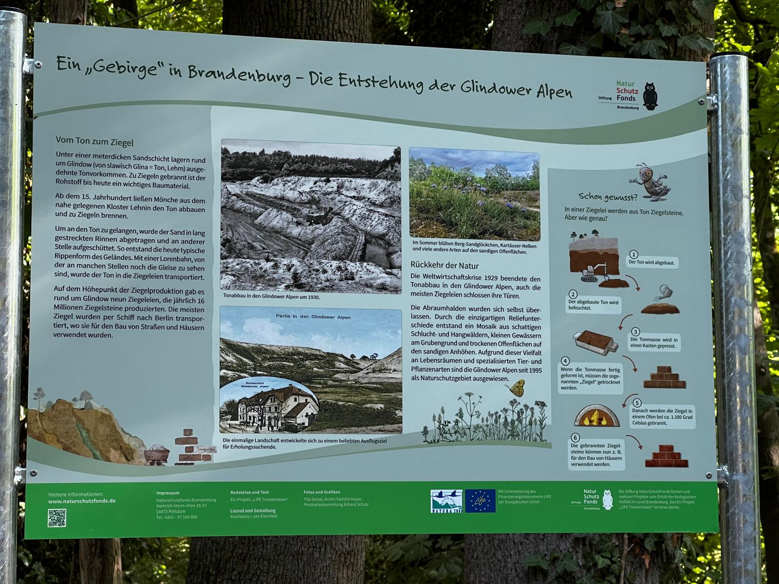 Insgesamt zehn neue Infotafeln säumen nun den neu belebten Lehrpfad. Sie wurden zielgruppengerecht gestaltet, sodass sowohl Erwachsene als auch Kinder spielerisch und informativ in die faszinierende Welt der Glindower Alpen eintauchen können.